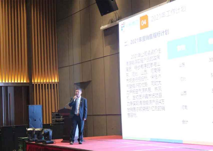 小家電公司副總經(jīng)理孟濤闡述2020年工程項目部取得的業(yè)績,分析本年度工作中的不足以及對明年工程項目市場進(jìn)行目標(biāo)銷售分解,針對不同區(qū)域采取不同的措施,爭取完成明年銷售指標(biāo)。