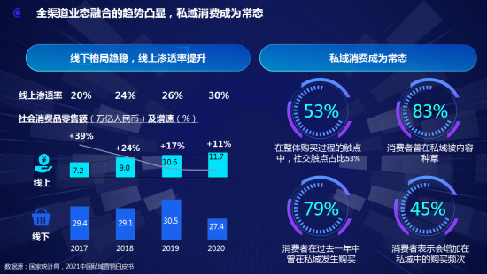 《白皮書》指出,隨著消費(fèi)者觸點(diǎn)的碎片化與決策無(wú)序化趨勢(shì),這倒逼家電企業(yè)必須圍繞消費(fèi)需求與決策鏈路構(gòu)建多元化場(chǎng)景,提升多端運(yùn)營(yíng)能力。對(duì)于家電企業(yè)而言,隨著互聯(lián)網(wǎng)紅利的消失,公域流量?jī)r(jià)格水漲船高,要想降低獲客成本、提高用戶生命周期價(jià)值,構(gòu)建自己的私域流量變得迫在眉睫。于是,加碼智慧零售戰(zhàn)略布局、加深線上線下一體化協(xié)同,逐漸成為家電企業(yè)打造第二增長(zhǎng)曲線的共識(shí)。同時(shí),越來(lái)越多家電企業(yè)將關(guān)注的焦點(diǎn)聚焦在公域流量和私域流量的打通上,真正從公域和私域分治的發(fā)展階段,進(jìn)入到公域和私域融合、協(xié)同和共進(jìn)的發(fā)展新階段。