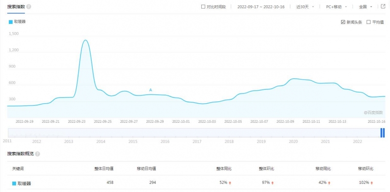 “取暖是人的馬斯洛需求中最底層的需求。國慶期間,一些地區氣溫變冷,給取暖產品市場帶來了一波小的高潮。”