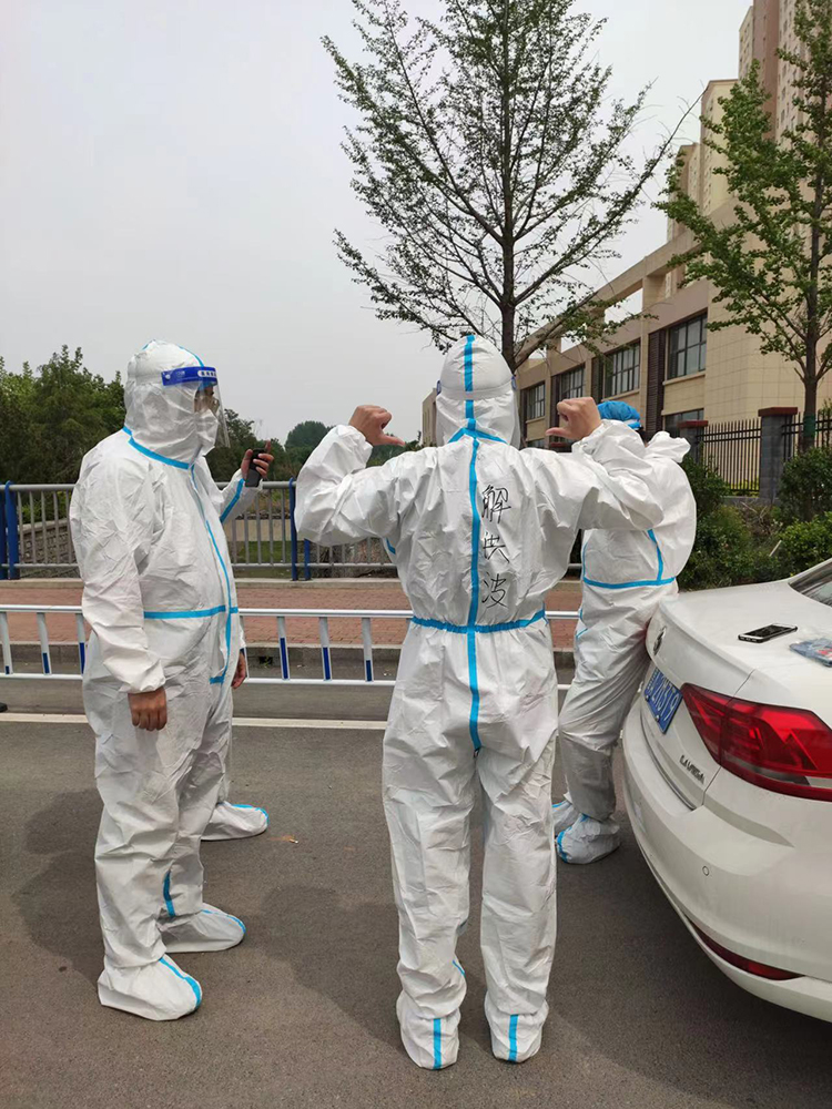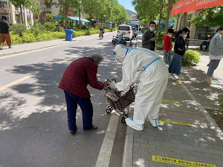 4月28日我們又接到緊急通知,需前往疫情較為嚴重的孫村街道支援,另外還要做好住宿的準備。當到達支援社區將山佳苑時,便看到有醫護車從小區行駛出來,我的心不由得一緊,也更加堅定了為疫情防控貢獻力量的決心與信念。